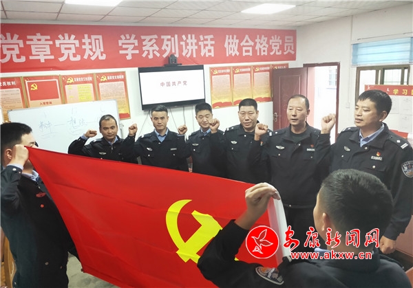 活動(dòng)中,支部書記為全體黨員講了生動(dòng)的一堂黨課,集體重溫了入黨誓詞,一起觀看了警示教育片《警鐘》。全體黨員干部面對(duì)鮮紅的黨旗莊嚴(yán)宣誓,重溫入黨誓詞,接受理想信念教育,心靈得到了又一次凈化。最后通過相互交流學(xué)習(xí)心得、討論各自思想感受,紛紛表示,要珍惜先輩們負(fù)重前行換來的和諧社會(huì),努力用自己的實(shí)際行動(dòng)扎實(shí)做好本職工作,以高度的政治責(zé)任感,積極為示范區(qū)人民群眾創(chuàng)造安全、暢通、有序的道路交通環(huán)境。