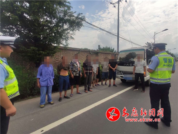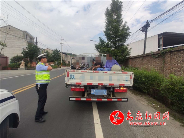 7月31日15時許,大隊執(zhí)勤民警在316國道沿線開展路面巡邏,行至恒口東大門時,發(fā)現(xiàn)一輛號牌為皖A(yù)C***C號輕型欄板貨車后車廂有違規(guī)載人嫌疑,巡邏民警立即上前攔停,示意駕駛?cè)死钅衬惩\嚱邮軝z查。經(jīng)查,該貨車核定載人數(shù)為5人,實際載9人,貨車車廂違法載客4人,屬于貨車違法載客的嚴(yán)重交通違法行為。