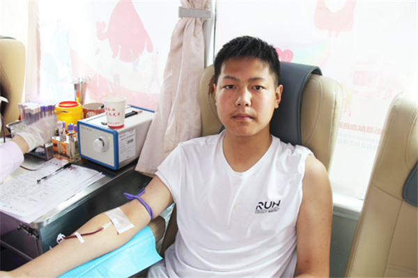 金濤濤是汽修專業(yè)四年級的學生,當天他第一個走上獻血車,已經(jīng)第四次獻血的他顯得非常輕松。他告訴我們,自己初次獻血是十八歲,之后每年時間到了都主動來獻血,上次他還拉上了爸媽,一家三口一起獻了血。金濤濤覺得獻血特別有意義,對自己的身體有好處,還能救人,每次收到血站發(fā)來的用血短信心里都超級自豪,就想多喊幾個人一起來,他說今后一定爭取把全宿舍的人都動員起來,多獻血多出力多助人!