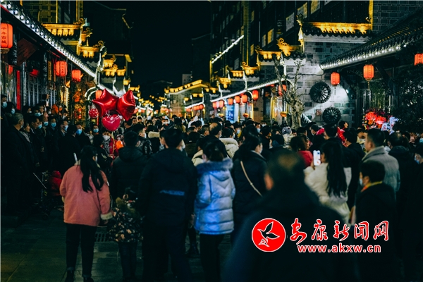 春節(jié)期間,走進(jìn)國(guó)家旅游休閑街區(qū)秦巴老街,青磚黛瓦、翹角飛檐,晚上的秦巴老街人山人海,熱鬧非凡。十幾名漢子伴著鑼鼓的節(jié)奏,舉竿來(lái)回奔走,兩條火龍?jiān)诳罩邪菏讛[尾,蜿蜒游走,場(chǎng)景十分壯觀。新春爭(zhēng)看彩蓮船,熱熱鬧鬧過(guò)大年,彩蓮女一只手拿手帕、一只手撫船,船頭的艄公撐蒿,丑角手握扇子隨船而行,配著鑼鼓的節(jié)奏舞動(dòng),好不熱鬧。