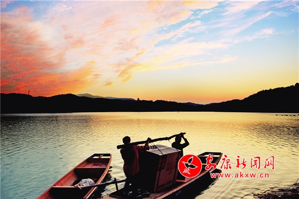 初冬的清晨,瀛湖風(fēng)姿綽約、曼妙無(wú)比。起初湖水像是受熱不均的沸水,這里一點(diǎn),那里一塊冒著熱騰騰的青煙,如絲如縷,在水面上輕盈地飄動(dòng)、游離、撕扯,如慵懶自在的白云,把天空、湖水襯托得更藍(lán)。漸漸地,煙嵐越來(lái)越濃,越來(lái)越多,像化不開的乳汁,最后整個(gè)湖面煙波浩渺,小船和遠(yuǎn)山若隱若現(xiàn),似人間童話仙境。這樣的山圍繞著這樣的水,這樣的水倒映著這樣的山,再加上湖中帆影點(diǎn)點(diǎn),白鷺行行,小島林立,魚群結(jié)對(duì),有種人在畫中游的感覺。深冬,總會(huì)落一兩場(chǎng)雪。那雪,極富層次。山下,素雪輕薄覆蓋;山上銀裝素裹,玉潔冰清。湖水則咕嘟咕嘟冒著熱氣,白綠相配,分外醒目,似丹青妙手繪制的山水畫,又似巧手繡娘精繡的刺繡,美輪美奐,惹人愛憐。