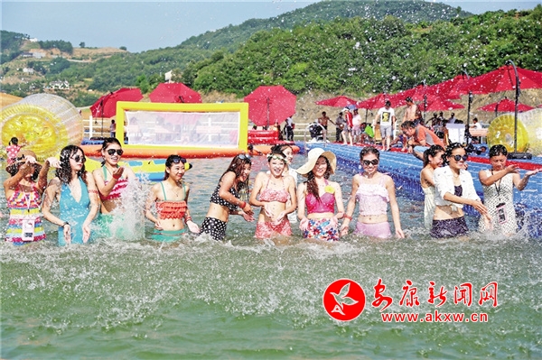 瀛湖的初夏,萬(wàn)千變化。清晨,山和水還在夢(mèng)中酣睡,一輪紅日從東面湖的盡頭沐浴而出,爬上山頭,霞光染紅了湖水,染紅了天空,湖面顯得更加清幽。傍晚,落日熔金,給群山鍍了一層金邊。此時(shí),群鳥歸隱,群魚入眠。江風(fēng)攪動(dòng)湖水,湖面波光瀲滟,明麗動(dòng)人。晚歸的漁民搖著一葉扁舟在寂靜的湖面上飄蕩,成為畫中最美的風(fēng)景。習(xí)習(xí)涼風(fēng)也吹散了白日的暑熱,舒適愜意,是休閑避暑的好去處。若遇雨天,天地間扯起絲絲銀線,水天一色,如煙如霧,籠罩在瀛湖上空。那若有若無(wú)輕煙一樣的雨霧輕盈地飄蕩在湖面上、群山間,翠屏山莊上的亭臺(tái)水榭、湖心碧螺島上的螺峰塔,全都沐浴在水蒙蒙的輕紗中,如夢(mèng)似幻。“西塞山前白鷺飛,桃花流水鱖魚肥。青箬笠,綠蓑衣,斜風(fēng)細(xì)雨不須歸?!贝藭r(shí),湖里的魚兒成群結(jié)隊(duì)地游出水面透氣,正是釣魚的最佳時(shí)機(jī),湖邊不少垂釣愛好者正興致勃勃地冒雨釣魚,完全不顧雨已打濕了衣服。湖中,一葉葉漁舟和游船在雨中漫游,幽幽絲竹之聲從游船中飄出,像游走在煙雨迷蒙的江南水鄉(xiāng)。