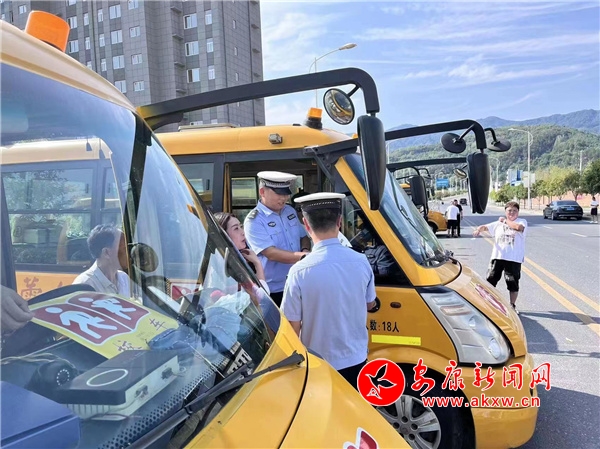 校車“體檢”現(xiàn)場,民警認真查驗車輛號牌、行駛證、車輛類型、車身顏色、發(fā)動機號、車輛識別代號、外廓尺寸等主要特征參數(shù),確認機動車的唯一性和合法性,對剎車、底盤等項目進行了重點檢測, 對校車外觀標識、輪胎、安全帶、停車指示牌、滅火器、安全錘、應(yīng)急門、行車記錄儀動等項目,做到逐個監(jiān)測,不漏一項,嚴防不合格的“問題”校車蒙哄過關(guān)。同時,按照《校車安全管理條例》規(guī)定,對校車駕駛?cè)速Y質(zhì)逐一進行審查,嚴防超齡、準駕車型與校車類型不符,不具備相應(yīng)車型3年以上駕駛經(jīng)歷,有酒駕或醉駕記錄、近3年有滿分記錄等情形的駕駛?cè)笋{駛校車。發(fā)現(xiàn)有駕駛資格即將降級的駕駛員等問題,及時向企業(yè)下達整改書,要求校車駕駛員及所屬幼兒園立即整改落實。