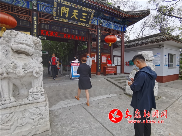 本網(wǎng)訊(記者 羅超)9月11日,在安康市香溪洞景區(qū)“三天門”外,不少市民、游客正在大門附近有序排隊,在不遠(yuǎn)處,文明旅游相關(guān)標(biāo)語設(shè)置在醒目位置,不少人依次通過閘機(jī)進(jìn)入景區(qū)。