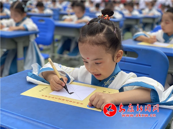 本網(wǎng)訊(通訊員 王宗濤)9月13日,孔子誕辰紀(jì)念日來臨之際,由安康市文化和旅游廣電局、安康市高新區(qū)教育體育局主辦,安康博物館、安康高新區(qū)第四小學(xué)承辦的以“喜迎二十大,啟蒙新未來”為主題的新生開筆禮儀式在高新四小操場隆重舉行,一年級340名新生體驗(yàn)傳統(tǒng)“開筆禮”,寫好人生第一撇。