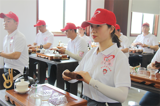 在隨后的炒茶和茶藝課上,大家更是興趣濃厚,在老師們耐心細致地講解引導下,大家一步一步動手親為,在舒緩的音樂聲和高雅的氛圍中感受著茶文化的熏陶。