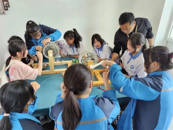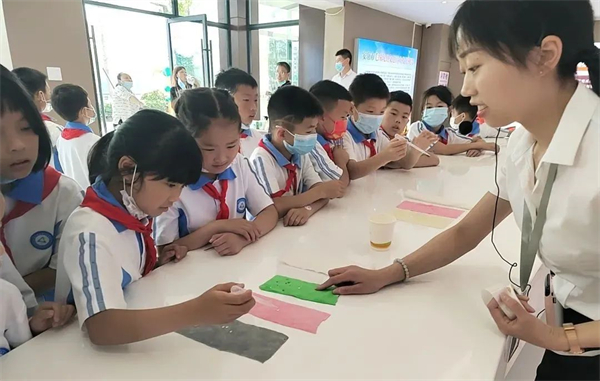 在這里可以體驗的活動有:一蠶繭手工DIY,孩子們可以充分發(fā)揮自己的想象自己創(chuàng)作;二是剝繭抽絲課堂,孩子們可以親手體驗繅絲的神奇,將一根根蠶絲擰成一股繩感受古人的聰明智慧;三是微觀世界課堂,讓孩子們學(xué)習(xí)顯微鏡的構(gòu)造與使用,體驗微觀世界的神奇,親自動手制作桑葉標(biāo)本,觀察并記錄了顯微鏡下桑葉的形態(tài)特征,最后還可以近距離觀察蠶寶寶,沉浸式體驗蠶桑教育文化。