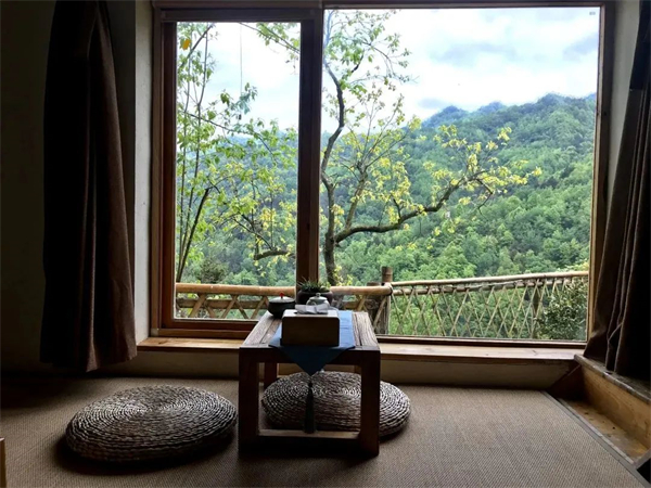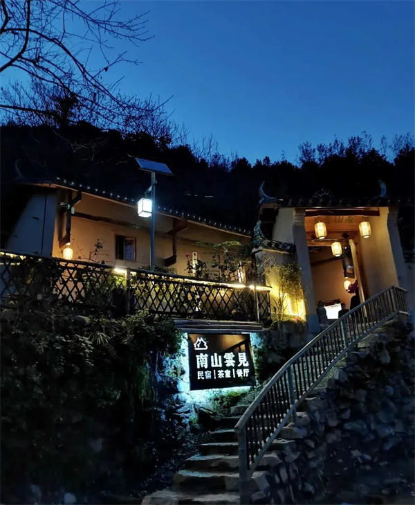 南山云見民宿共有11個陜南民居,集茶舍、住宿、餐廳、書院、美術(shù)館為一體,穿梭于鳳凰山中的康養(yǎng)文化健身步道,宛如一條絲線,串聯(lián)了大南溝的龍?zhí)丁堧[谷、凈春山、講經(jīng)臺、逍遙石、明月寺、南山云見民宿等景點。