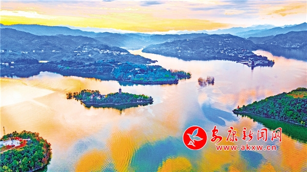 安康位于漢江中上游,秦嶺以南,巴山以北,漢江穿境而過。近日的安康瀛湖,色彩斑斕、美麗如畫,特別是在夕陽西下和旭日初升的時(shí)候,格外美麗,如一幅巨大的山水畫鑲嵌在群山懷抱之中,引人入勝。 趙華斌 攝?