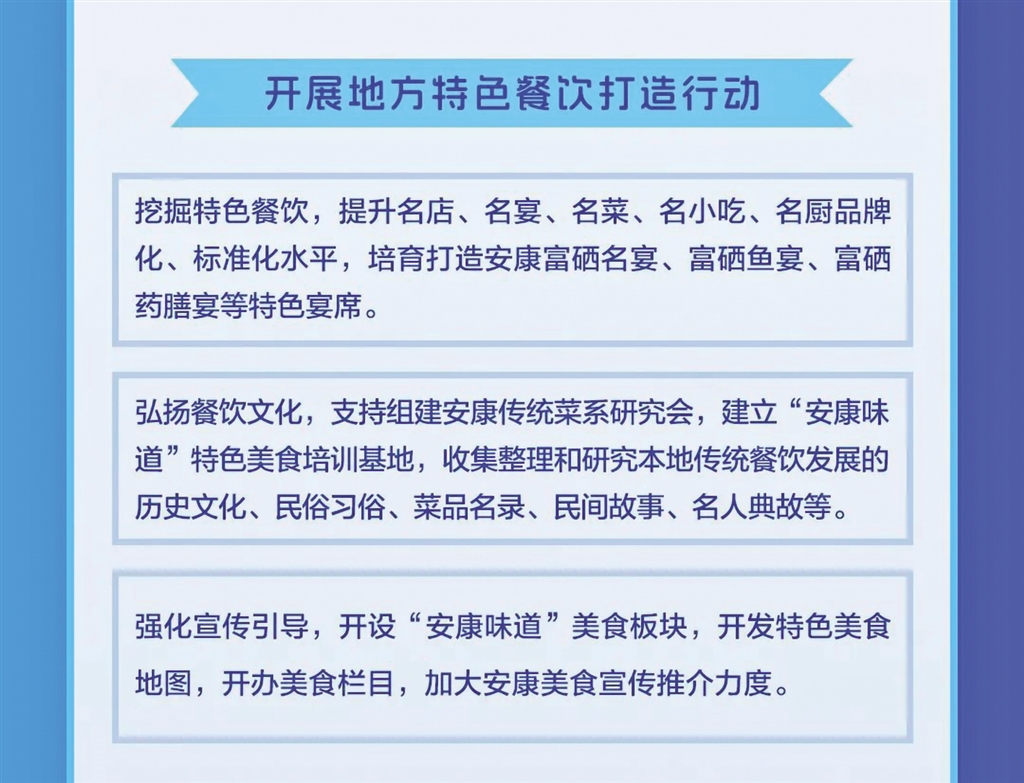 日前,安康市商務(wù)局等11部門聯(lián)合發(fā)布《關(guān)于進(jìn)一步推進(jìn)全市餐飲業(yè)高質(zhì)量發(fā)展的實(shí)施意見》,本期帶您一圖讀懂其重點(diǎn)任務(wù)。