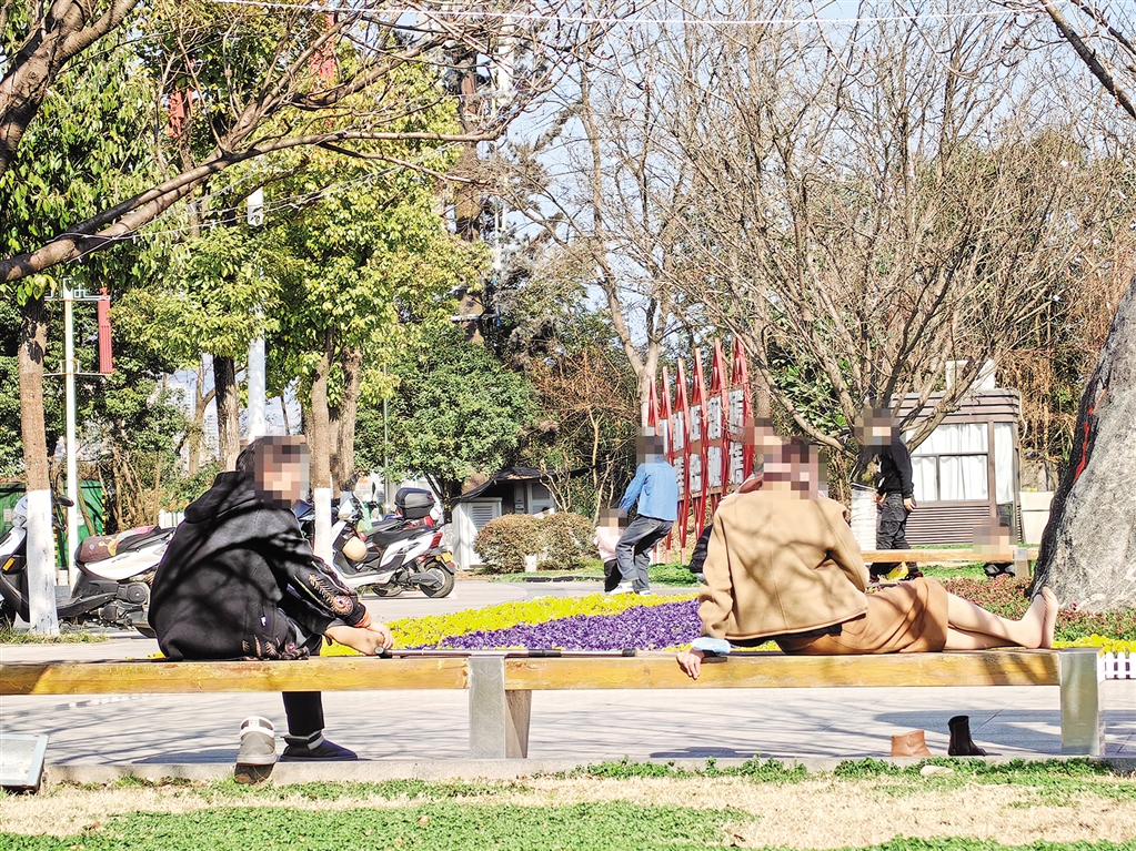有個別游客日前在安康博物館廣場未按文明旅游有關(guān)規(guī)定,脫鞋橫臥在公共座位上,影響公共文明。 鄭時根 攝?