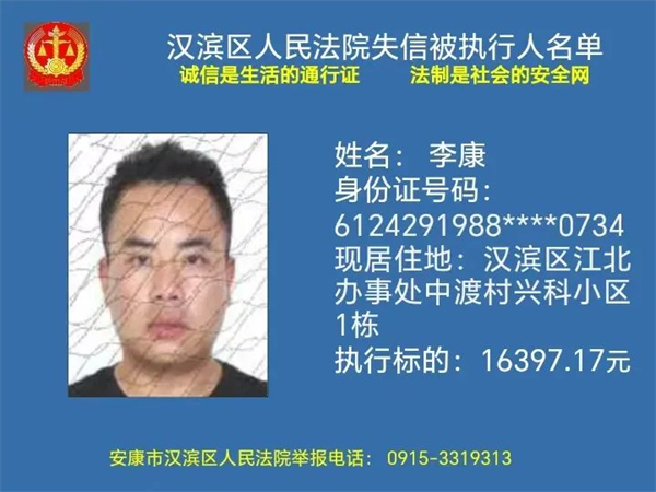 2月1日安康市漢濱區(qū)人民法院曝光新一批失信被執(zhí)行人名單快看都有誰轉(zhuǎn)發(fā)提醒更多人↓↓↓?