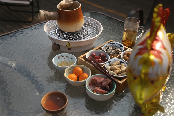 翠屏島瀛湖茶舍,我們推出了圍爐煮茶項(xiàng)目,炒茶師傅現(xiàn)場(chǎng)殺青、揉捻、干燥,隨后將瀛湖的明前茶呈送到游客面前。當(dāng)然,游客若有興趣,也可親自實(shí)操這難能可貴的體驗(yàn)。