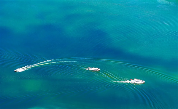 清晨7時(shí)30分,即已有游客趕到景區(qū)游客中心,8時(shí)10分,第一趟班船已然發(fā)船。上午9時(shí),瀛湖北門(mén)口的停車(chē)場(chǎng),500余停車(chē)位就已停滿車(chē)輛。車(chē)輛開(kāi)始向景區(qū)南大門(mén)——翠屏島方向分流。