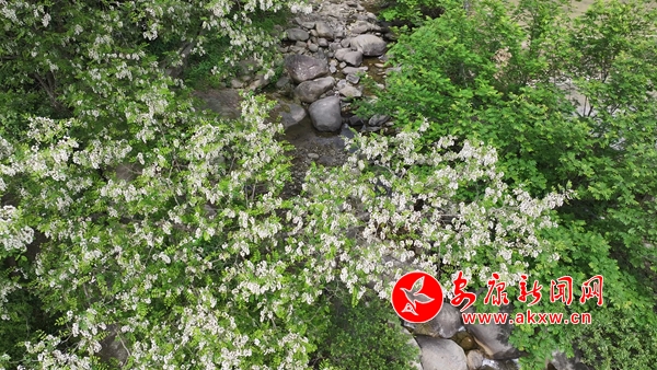 漢陰:漫山槐花白如雪 花香四溢醉人心