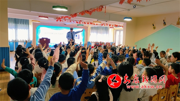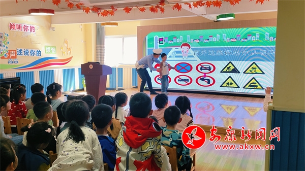 活動中,民警用生動有趣的語言為小朋友講解了安全行走、安全過馬路、安全乘車以及正確佩戴安全頭盔、系好安全帶、認識交通標志標識等基本的交通安全知識。同時,通過現(xiàn)場互動、你問我答的方式,向學生們講解闖紅燈、橫穿馬路、多人騎乘摩托車等不文明交通行為的危害。最后,民警現(xiàn)場教學交通指揮手勢,加深小朋友對交通安全常識的理解與記憶,引導他們從小樹立安全出行的理念,增強安全意識,自覺遵守交通法規(guī)。