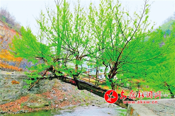 四十多年前,一場百年不遇的洪災(zāi),沖壞堤坎,毀了樹木,襲了田地,河灘一片狼藉。這棵老柳,根部的土石被洪水沖刷得所剩無幾,沒有泥土的支撐樹干緩緩傾斜,晃悠了一天一夜,頭部漸漸地搭到了東岸堤坎。次日清晨,河?xùn)|有人發(fā)現(xiàn)了,立即喊上四五個小伙子,從樹身爬過,去西岸救人、查災(zāi)。緊接著,兩岸的人們爭相過河到對岸去救災(zāi)、救苗,又陸續(xù)過河修路、種地,進而過河上學(xué)、出山,一連數(shù)月都從樹身爬過,把這樹干當(dāng)作橋身,你來我往地通行于兩岸。于是,這道天然“樹橋”,既凝聚了生產(chǎn)救災(zāi)力量傳遞了兩岸情感,又溝通了人流、物流、信息流。