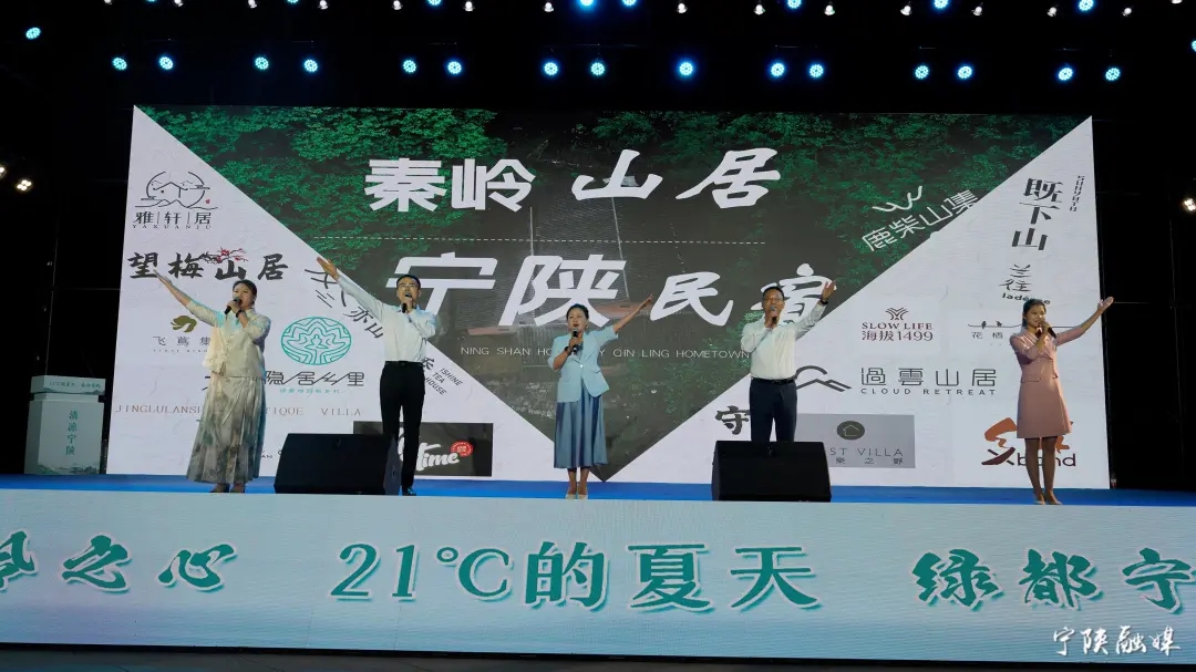 活動伊始,激情四溢的開場舞“歡騰淺夏·秦風(fēng)鼓韻”瞬間點燃了現(xiàn)場氛圍,拉開了整個推介活動的序幕。隨后現(xiàn)場情景式推介景區(qū)景點及自駕游、親水游、研學(xué)游三條精品旅游線路,從自駕游的探險之旅,到親水游的清涼體驗,再到研學(xué)游的文化熏陶,寧陜縣的旅游線路精彩紛呈,令人心動不已?!肚貛X山居·寧陜民宿》宣傳片及五位民宿負(fù)責(zé)人上臺現(xiàn)場推介,生動展現(xiàn)了寧陜縣民宿的特色和亮點,讓現(xiàn)場觀眾迫不及待想到寧陜體驗民宿,住在自然里。穿插的《福地金壇·逍遙江南》《醉美寧陜》《煙雨琦旅·錦繡寧陜》等文藝表演,發(fā)布的寧陜夏季系列文旅活動推介和旅游優(yōu)惠政策,陳設(shè)的秦嶺山貨大集,80余種山珍美味,讓現(xiàn)場觀眾“欲罷不能”,盡享寧陜魅力!