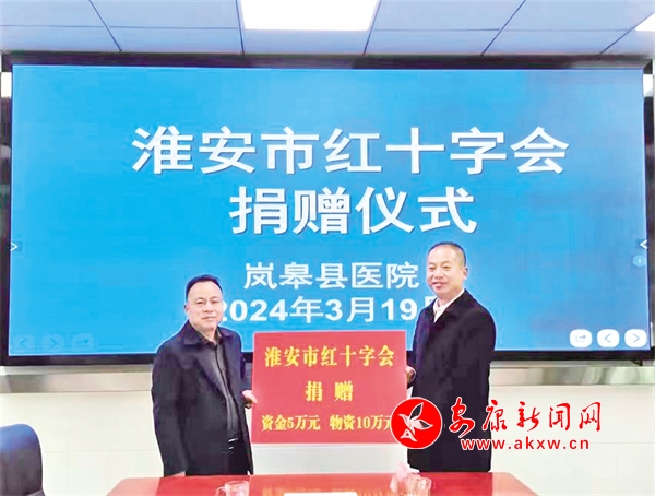 淮安市紅十字會為嵐皋縣醫(yī)院捐贈資金與物資。