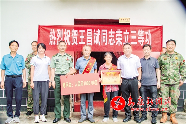 喜報(bào)進(jìn)家門,山村傳美名。7月18日,嵐皋縣人武部、縣退役軍人事務(wù)局及藺河鎮(zhèn)相關(guān)負(fù)責(zé)人前往蔣家關(guān)村,為現(xiàn)役軍人王昌斌家庭送去三等功喜報(bào)和慰問金,讓軍人家屬共享這份榮耀和喜悅,表達(dá)黨和政府對(duì)立功受獎(jiǎng)軍人的褒獎(jiǎng)和慰問。