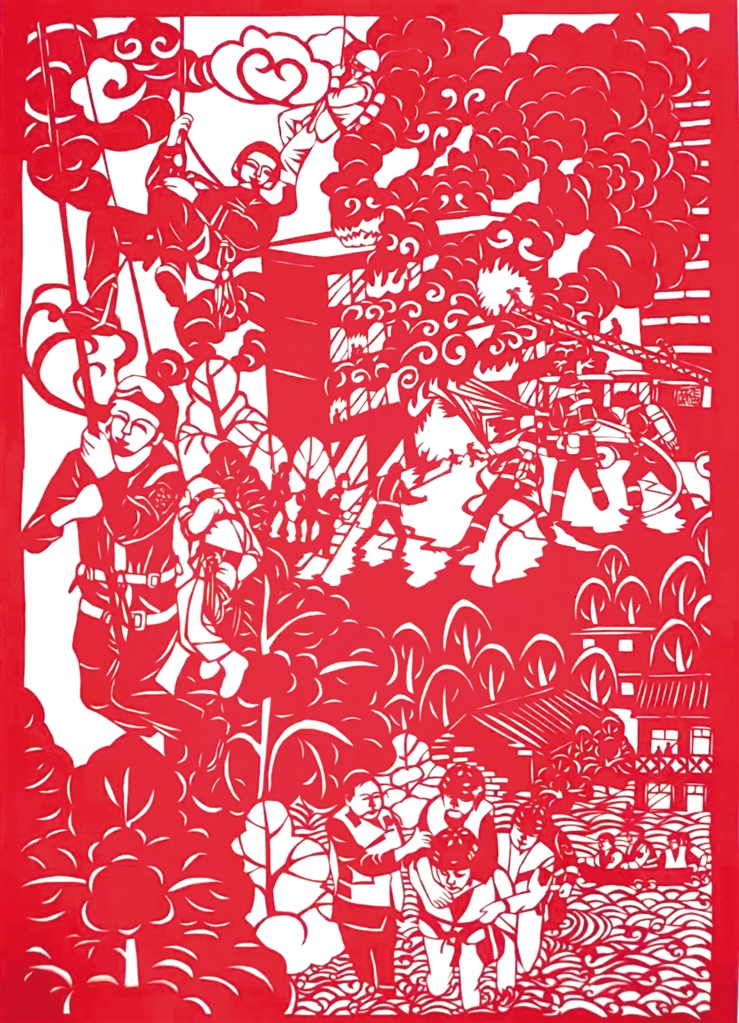 2022年,張莉的剪紙作品在“我與火焰藍(lán)”安康消防授旗訓(xùn)詞三周年風(fēng)采繪畫大賽中,榮獲“成人組優(yōu)秀作品獎(jiǎng)”,并被主辦方收藏。2023年張莉帶隊(duì)參加“德潤安康”安康市首屆校園科技藝術(shù)節(jié),在剪紙區(qū),小隊(duì)員們發(fā)揮巧思妙想,精心設(shè)計(jì)、細(xì)心折剪,只見刀尖一開一合,紅紙不斷翻轉(zhuǎn),一幅幅栩栩如生、惟妙惟肖的作品就讓觀眾親眼見證了“刀光剪影”的神奇。隊(duì)員們嫻熟的技藝,精美的作品迅速吸引了許多人駐足參觀。