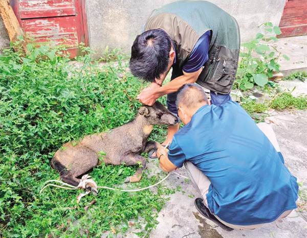 有著多次救助野生動物經(jīng)驗的八仙保護(hù)站站長鄒奎兵,一邊安撫驚恐不安的野羊,一邊聯(lián)系當(dāng)?shù)孬F醫(yī)準(zhǔn)備救治。針劑急救,傷口處理,很快就緒,并臨時安置在千家坪林場廢棄的場院中。