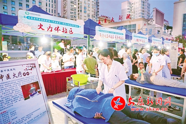 當晚,石泉縣中醫(yī)醫(yī)院在春潮廣場設(shè)置中醫(yī)健身操八段錦、中草藥科普、中藥養(yǎng)生茶免費飲用及展示、古法中藥香囊制作體驗、中醫(yī)護理適宜技術(shù)體驗、中醫(yī)體質(zhì)辨識與調(diào)養(yǎng)指導(dǎo)、健康咨詢等7個主題專區(qū),向市民展示中醫(yī)健身操、中草藥等,邀請市民飲用烏梅茶、美容養(yǎng)顏茶,體驗中藥香囊制作過程,向市民講解中草藥知識,為市民免費查體,提供健康咨詢和推拿、艾灸、刮痧、拔罐、火療等多種中醫(yī)療法服務(wù),吸引了眾多市民體驗。