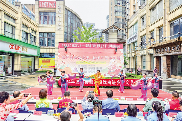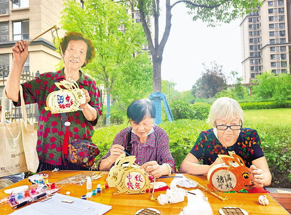 9月12日,漢濱區(qū)江北街道后張嶺社區(qū)在山水嶺居小區(qū)舉辦“中秋佳節(jié)情意濃,文明風尚萬家揚”活動。活動由居民自己創(chuàng)意進行文采、繪畫展示。(胡建波 攝)