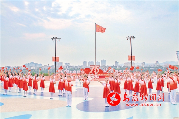 9月28日,安康市慶祝中華人民共和國成立75周年群眾大合唱活動在親水廣場舉行。來自全市100多家單位的黨員干部和社區(qū)群眾組成的21支隊伍共4000余人激情豪邁,歌唱祖國。(記者 張喬 攝)