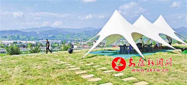 當(dāng)我賞罷一馬平川的恒口貢米基地,邁步田園后面的緩坡,走過(guò)以“稻夢(mèng)時(shí)光”統(tǒng)一冠名的彩虹路、孝義文化長(zhǎng)廊、研學(xué)基地、民宿群落,來(lái)到土坡頂臺(tái)上的這塊綠地,目光所及,仍屬“稻夢(mèng)”系列:碧綠的草坪、雪白的帳篷、深紅的房子、鮮艷的花卉,組成了視野開(kāi)闊、環(huán)境幽靜的“稻夢(mèng)時(shí)光露營(yíng)基地”。