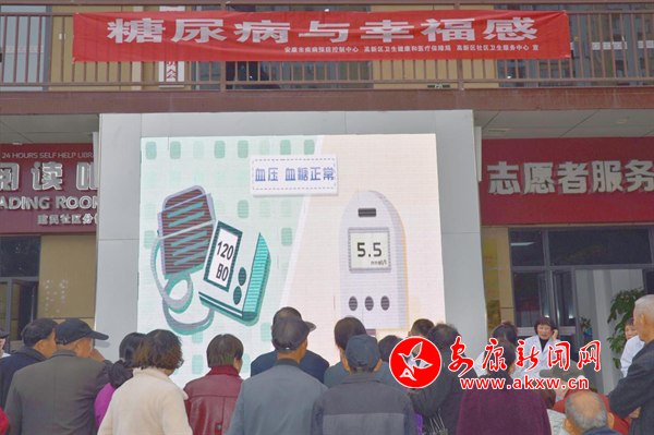 活動圍繞“糖尿病與幸福感”主題,通過懸掛橫幅、免費(fèi)測血壓和血糖、循環(huán)播放糖尿病防治視頻、發(fā)放宣傳資料和支持性工具,市疾控中心工作人員向社區(qū)居民介紹了糖尿病的常見癥狀,日常生活中怎么預(yù)防糖尿病,糖尿病治療的“五駕馬車”,即健康教育、合理飲食、適量運(yùn)動、規(guī)律用藥、自我監(jiān)測。共計(jì)發(fā)放各類宣傳品1500余份,測血壓血糖100人。