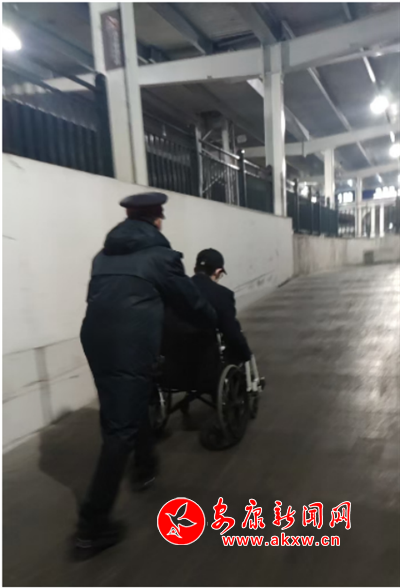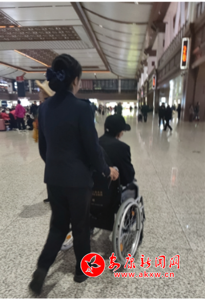 本網(wǎng)訊(通訊員 毛明雪)11月18日,陳先生在西安省城醫(yī)院化療出院后,訂了晚上從西安回至安康的T248次列車12車。在候車廳陳先生病痛難忍,行動(dòng)不便,無法正常檢票進(jìn)站。眼看人們紛紛檢票進(jìn)站了,陳先生十分著急,陪同陳先生的家人抱著試著看的心態(tài)向檢票處的工作人員說明情況,工作人員立刻用對(duì)講服務(wù)系統(tǒng)為陳先生安排了專職工作人員,工作人員用輪椅推著陳先生經(jīng)過綠色通道送至12車。