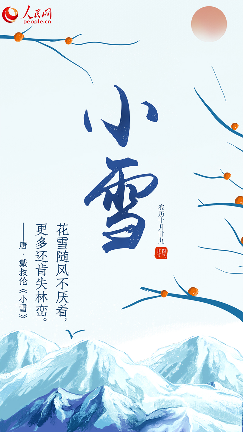 小雪之時(shí),雖寒氣來(lái)襲,冷風(fēng)直撲,但也能從中找到一份獨(dú)特的浪漫?!盎ㄑ╇S風(fēng)不厭看,更多還肯失林巒”,唐代詩(shī)人戴叔倫看著窗前飄揚(yáng)的花雪,洋洋灑灑飛到山林之中,甚是好看;“滿城樓觀玉闌干,小雪晴時(shí)不共寒”,宋代詩(shī)人黃庭堅(jiān)看到下雪頓覺(jué)開(kāi)心,天晴后也沒(méi)那么寒冷;“小雪未成寒,平湖好放船”,宋代詩(shī)人韓維發(fā)現(xiàn)小雪雖至,湖面還未結(jié)冰,尚可乘船游湖、觀賞美景。