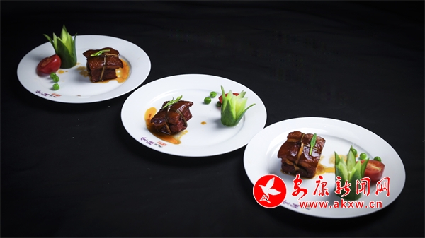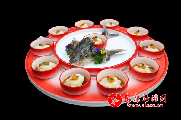 “陜南淡水魚餐飲暨‘贛義鑫杯’烹飪技能大賽”是張顯峰走出去學(xué)習(xí)交流檢驗(yàn)自己菜品研究成果的平臺(tái)。在準(zhǔn)備本次比賽菜品時(shí),他選用了紫陽縣最好的食材“富硒鱘魚”、花鰱魚,土黑豬五花肉及羊肚菌等蔬菜,精心制作了兩道菜品,第一道菜品是紫陽茶香宴中的主菜——茶香鱘龍。這道菜擺盤高雅,肉質(zhì)細(xì)膩,口味鮮美,茶香與淡水魚的完美結(jié)合,讓人仿佛置身于清新的茶山之間,品味著大自然的饋贈(zèng)。