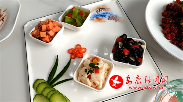 紫陽洄水魚宴注重五彩斑斕“色美”,講究形態(tài)各異“形美”,追求突出特色“香美”,強調(diào)細膩柔滑“味美”。由8個涼菜、8個熱菜、2道小吃組成。涼菜有香酥小魚、干煸牛肉、茶香魚皮、鱘魚凍、撈汁七彩花生、雙色酸蘿卜、雙色變蛋、涼拌折耳根;熱菜包含茶香鱘魚、紫蘇魚片、熗鍋鯉魚、釀羊肚菌、辣子雞、臘味雙拼、魚頭燉黑豆腐、魚丸湯;小吃為魚肉餃煎和紫菜魚餅;主食則有金銀米飯以及酸菜面等。?