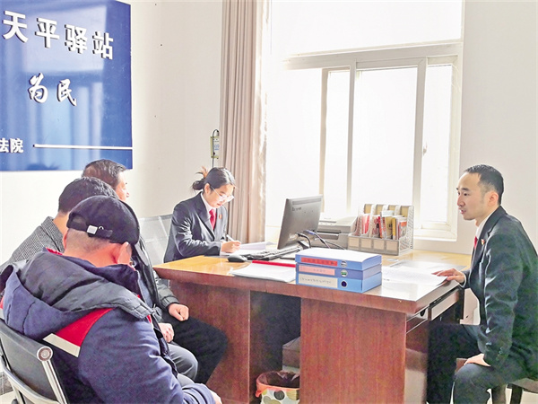 近年來,旬陽法院立足山區(qū)基層法院實(shí)際,在抓好人民法庭工作的基礎(chǔ)上,在法庭下轄鎮(zhèn)的村、社區(qū)設(shè)立“天平驛站”,安排法官定期輪值,及時(shí)響應(yīng)群眾訴求,實(shí)現(xiàn)矛盾糾紛一站式接收、一攬子調(diào)處、全鏈條閉環(huán)解決, 推動審判觸角向百姓“家門口”延伸。