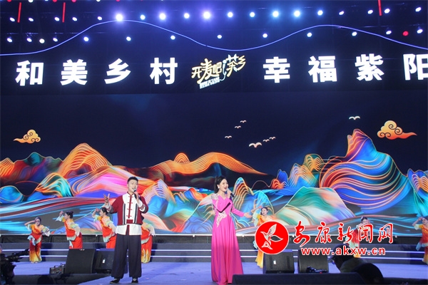 王彪宣布紫陽茶文旅融合IP“開麥吧!茶鄉(xiāng)”啟幕?;顒右浴昂兔类l(xiāng)村 幸福紫陽”為主題?;顒蝇F(xiàn)場燈光如晝,隨著激情的旋律,17個鎮(zhèn)代表隊陸續(xù)進場。600架無人機騰空而起,以茶為主題,以蒼穹為幕、夜空作畫,演繹《茶歌紫陽·幸福安康》,組成“開麥吧·茶鄉(xiāng)”“漢江畫廊 茶歌紫陽”“紫陽富硒茶 越喝越想TA”等巨型字樣時,現(xiàn)場爆發(fā)出雷鳴般的掌聲。期間,活動總導(dǎo)演作“開麥吧!茶鄉(xiāng)”賽制介紹。伴隨著現(xiàn)場觀眾的激情歡呼,文藝節(jié)目相繼上演?!堕_麥吧!茶鄉(xiāng)》《茶史長歌》《吉祥頌》《故鄉(xiāng)》《紫陽仙子》《硒谷放歌》《高山茶語》等節(jié)目將紫陽豐富的旅游資源、特色產(chǎn)業(yè)、人文風(fēng)情展現(xiàn)得淋漓盡致,掌聲如潮,喝彩聲、吶喊聲此起彼伏。中國內(nèi)地歌手韓磊演唱的歌曲《走四方》《等待》《再借五百年》《不忘初心》將現(xiàn)場氣氛推向高潮。絢爛的燈光秀、煙花秀閃耀全場,光與影的交織變換構(gòu)成了一幅幅絕妙畫卷。在全場所有演員同唱蹦茶迪《嗨·茶鄉(xiāng)》后,文藝演出落下帷幕。
