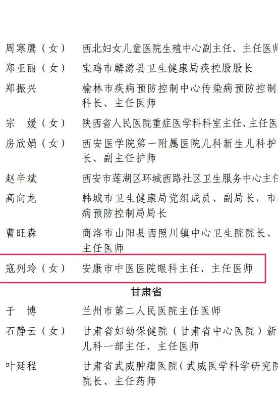 安康市中醫(yī)醫(yī)院眼科主任