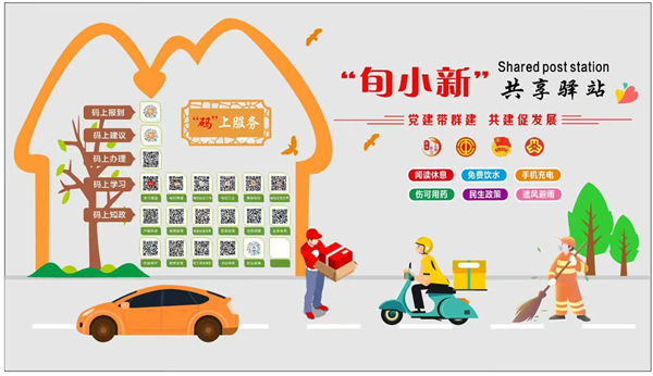 “旬小新”共享驛站按照“黨建帶群建 共建促發(fā)展”思路,秉持“需求前置、服務(wù)賦能”理念,通過整合行業(yè)部門、企業(yè)、社會(huì)三方資源,著力構(gòu)建“15分鐘暖新服務(wù)生態(tài)圈”,為快遞員、外賣騎手等新就業(yè)群體提供閱讀休息、免費(fèi)飲水、手機(jī)充電、應(yīng)急藥箱等18項(xiàng)基礎(chǔ)服務(wù)設(shè)施。
