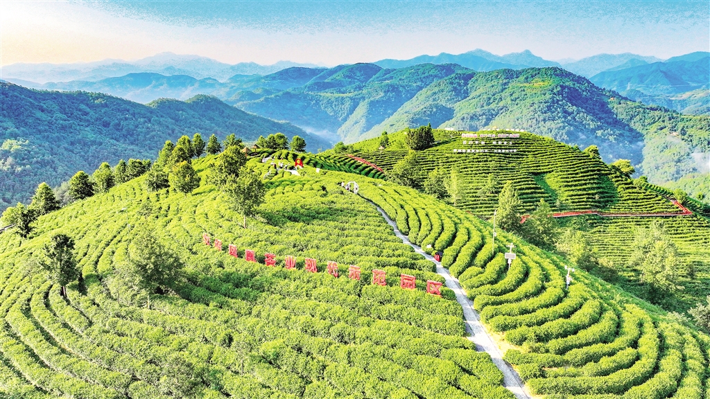 茶山上,茶農(nóng)忙著搶采春茶,游客穿梭其間打卡留影。目睹這熱鬧非凡的景象,蔣家坪村村民的臉上綻放出質(zhì)樸而滿足的笑容。大家驚喜地發(fā)現(xiàn),5年來,老縣鎮(zhèn)無邊光景一時新,自家茶園風(fēng)光旖旎,吸引眾多游客前來。從賣茶葉到“賣風(fēng)景”,蔣家坪村走出一條茶旅融合新路子,實現(xiàn)生態(tài)效益與經(jīng)濟(jì)效益“雙豐收”,發(fā)展成果不斷惠及群眾。