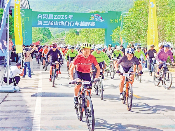 5月1日,白河縣“相約天寶·挑戰(zhàn)極限”第三屆山地自行車(chē)越野賽在天寶農(nóng)園景區(qū)舉辦,來(lái)自廣東、廣西、四川、湖北等7省市的160余名男女運(yùn)動(dòng)員和騎行愛(ài)好者參與其中。朱明富 攝