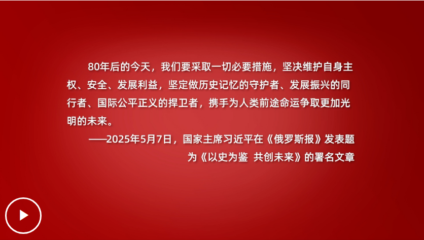 展望未來(lái),在變亂交織的世界中,習(xí)近平強(qiáng)調(diào)“以史為鑒”,堅(jiān)定做歷史記憶的守護(hù)者、發(fā)展振興的同行者、國(guó)際公平正義的捍衛(wèi)者,攜手為人類前途命運(yùn)爭(zhēng)取更加光明的未來(lái)。