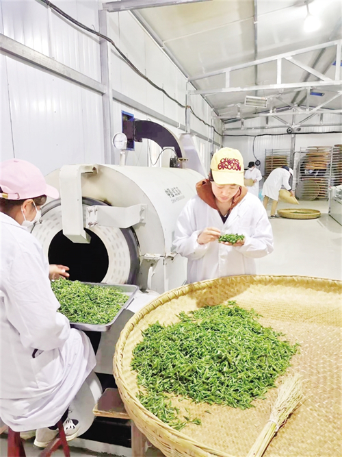 沿著九曲山路攀至絲鋪村五龍山,1200米的海拔高地,500畝生態(tài)茶園豁然舒展在眼前。茶農(nóng)們星羅棋布地穿梭在茶園,夏茶葉紛紛從茶樹間跌落?!案呱讲杌馗首?,這片云海就是天然保鮮庫?!贝逯Р繒洸碳椅妮p捻茶葉,陣陣清香沁人心脾。旬陽五龍山農(nóng)民種植專業(yè)合作社負(fù)責(zé)人王志富打開茶廠卷簾門,生產(chǎn)線熱氣蒸騰?!叭ツ晡覀兪召徚?000公斤鮮葉,加工了1000公斤干茶,產(chǎn)值達(dá)到30萬元,輻射帶動(dòng)周邊村民端穩(wěn)飯碗?!?/p>