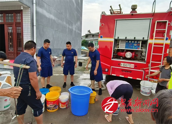 受高溫干旱天氣影響,漢陰縣城關(guān)鎮(zhèn)部分群眾生產(chǎn)生活用水受到影響。5月22日,該鎮(zhèn)協(xié)調(diào)灑水車、消防車,組織黨員干部為群眾送水。張輝 攝