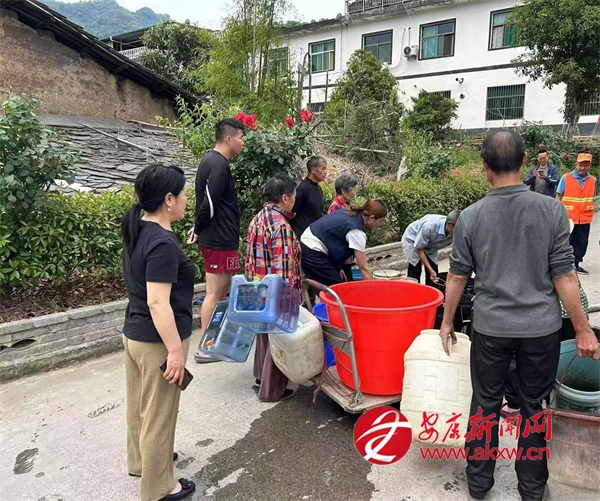 5月19日,平利縣長安鎮(zhèn)積極應(yīng)對旱情,組織常安鄉(xiāng)建公司開展送水入戶行動(dòng),確保村民飲水安全。圖為鎮(zhèn)村干部頂著烈日挨家配送。胡鈴鈴 攝