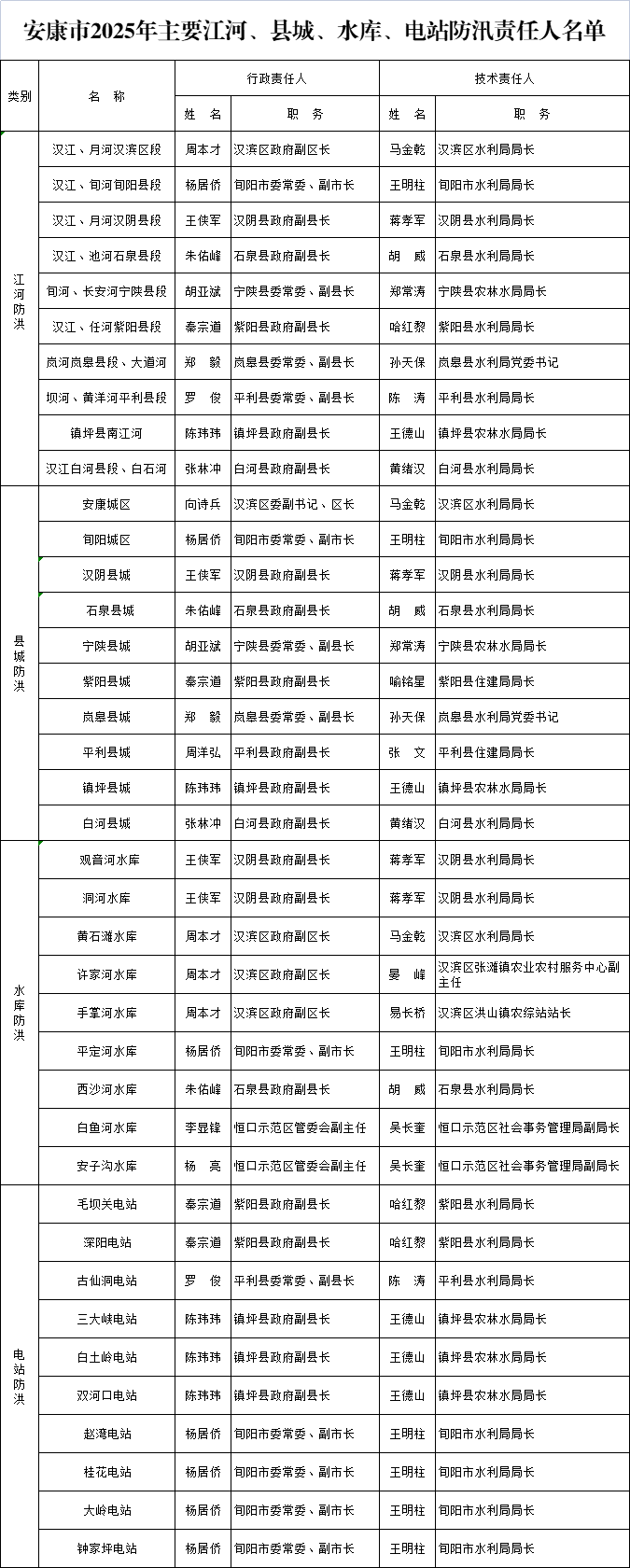 安康市2025年主要江河、縣城、水庫、電站防汛責(zé)任人名單公布