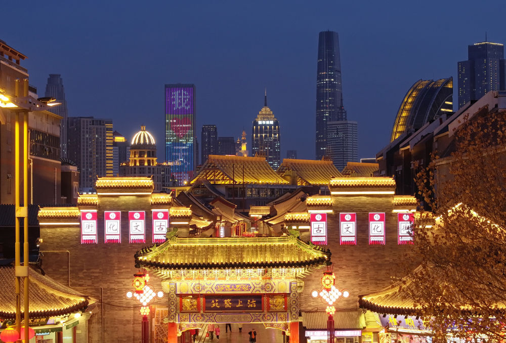 天津古文化街緊臨海河,早在1404年天津設(shè)衛(wèi)之前,便因漕運(yùn)經(jīng)濟(jì)的發(fā)展,成為天津商貿(mào)活動(dòng)和文化交流的聚集地,留下了眾多珍貴歷史遺跡。如今的天津古文化街,位列“津門十景”之一,匯聚了一眾老字號(hào)和特色非遺品牌。這是2024年2月1日拍攝的天津古文化街(無人機(jī)照片)。