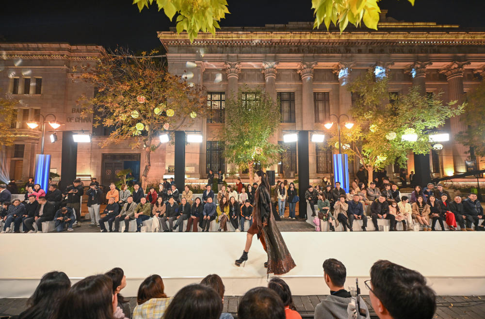 2024年10月26日,模特在天津解放北路上搭起的T臺(tái)走秀。