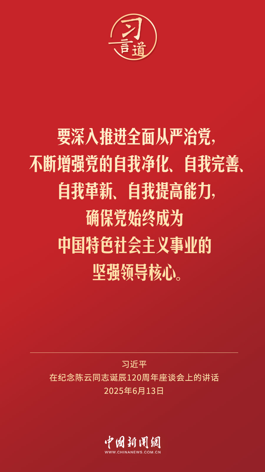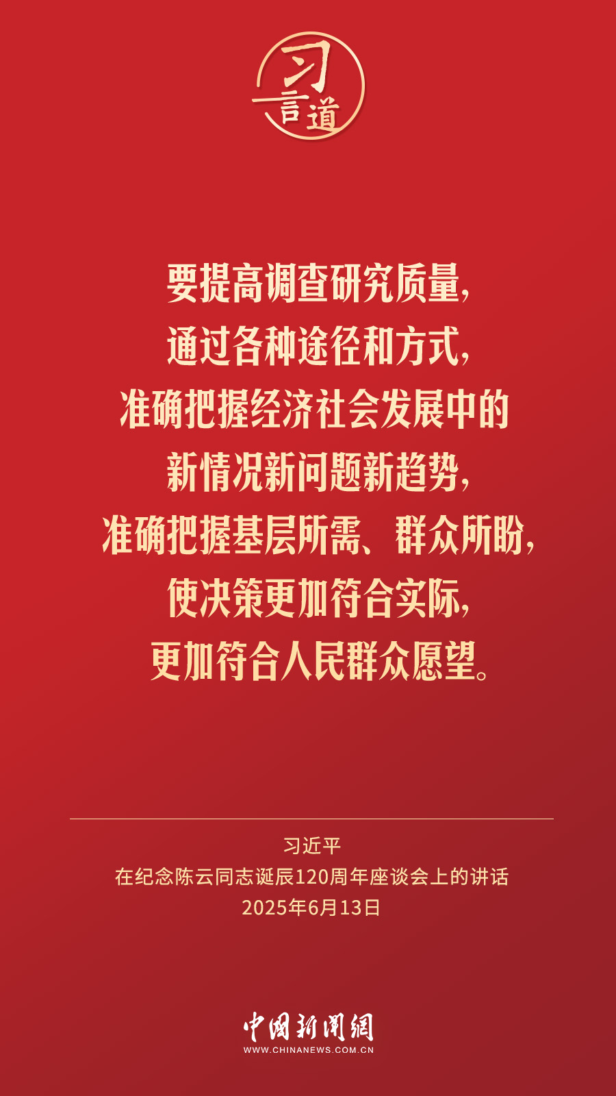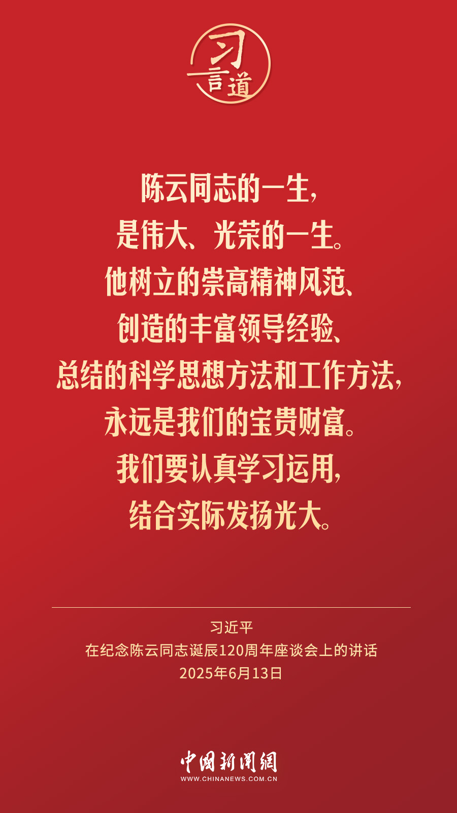 ?中共中央13日在人民大會堂舉行座談會,紀(jì)念陳云同志誕辰120周年。中共中央總書記、國家主席、中央軍委主席習(xí)近平發(fā)表重要講話強(qiáng)調(diào)——
