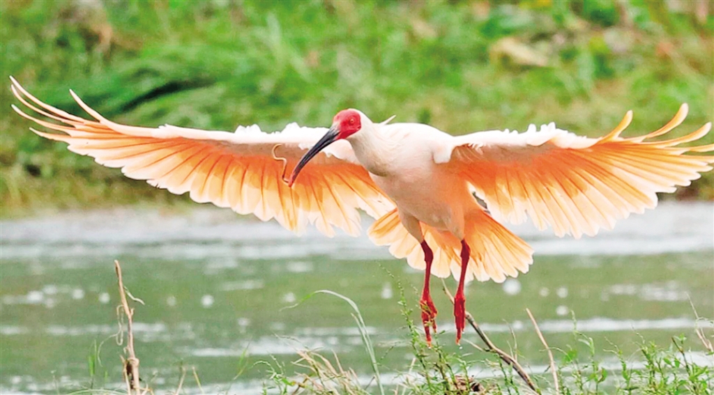 羽毛主要是白色,嘴黑而彎曲,臉和嘴基紅色,翅膀和尾巴粉紅色,腳短且紅色。幼鳥頰部橙黃,腳淺褐色,羽毛呈煙灰色,被譽為“東方寶石”和“吉祥之鳥”。(來源:安康市林學(xué)會)